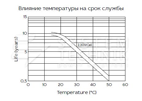 - Срок хранения без подзаряда: 6 мес. при 25°C;