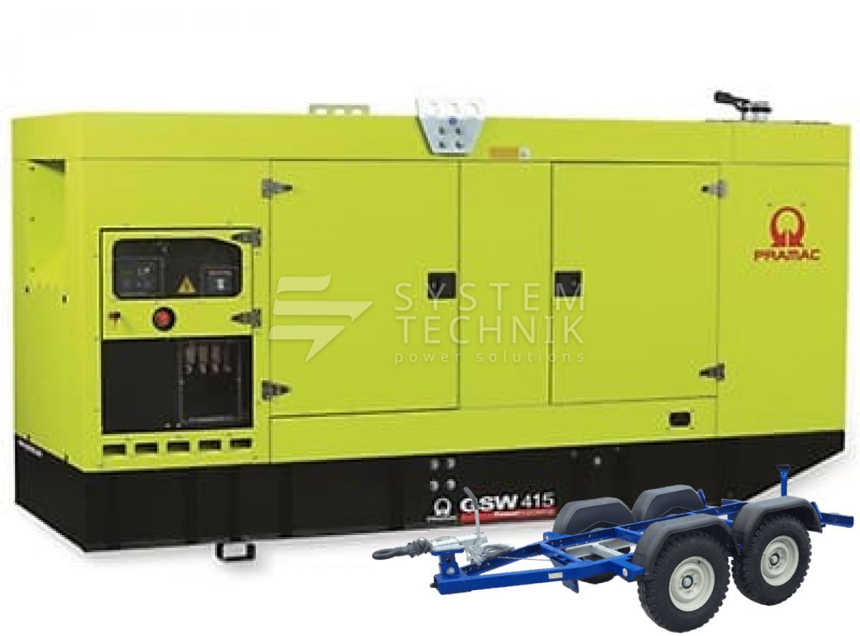 - Дизельный генератор Pramac GSW 415 P 400V В кожухе на прицепе
