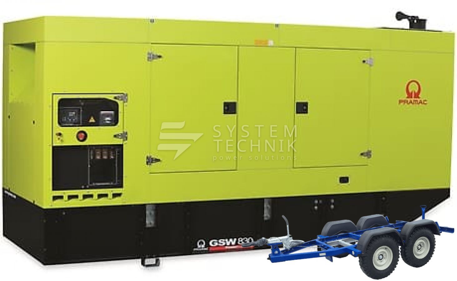 - Дизельный генератор Pramac GSW 830 DO 400V В кожухе на прицепе
