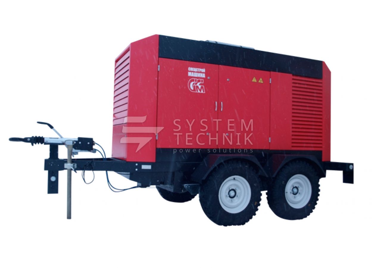 - ССМ ЭД-100-Т400-1РПМ1 в погодозащитном кожухе на шасси на прицепе